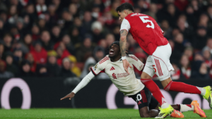 The most notable incident occurred in the 35th minute when Jeremie Frimpong went down in the box following a challenge from Piero Hincapie. Frimpong appeared to hold his ankle, but referee Anthony Taylor opted not to award a penalty. Initially, contact seemed minimal, but slow-motion replays showed Hincapie’s boot did make contact with the Dutch winger. The decision became a talking point after the stalemate, leaving Arne Slot’s side 14 points behind Mikel Arteta’s table-toppers.