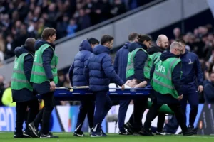 Ben Davies was stretchered off in the first half of Tottenham Hotspur’s meeting with West Ham after picking up what looked to be a left-leg injury in a collision with Jarrod Bowen.